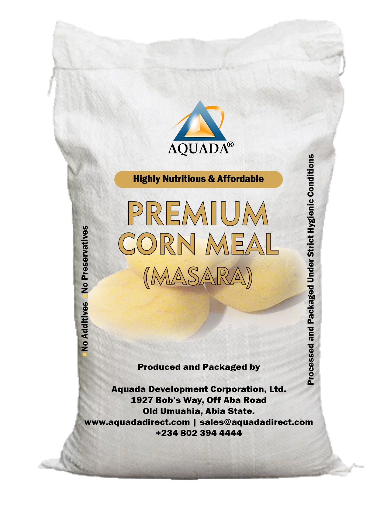 Aquada premium corn meal is a coarsely milled product obtained from dried corn (maize) kernels. It is the mid-size fraction of ground corn. It is a common staple food and is ground too coarse, medium, and fine consistencies.